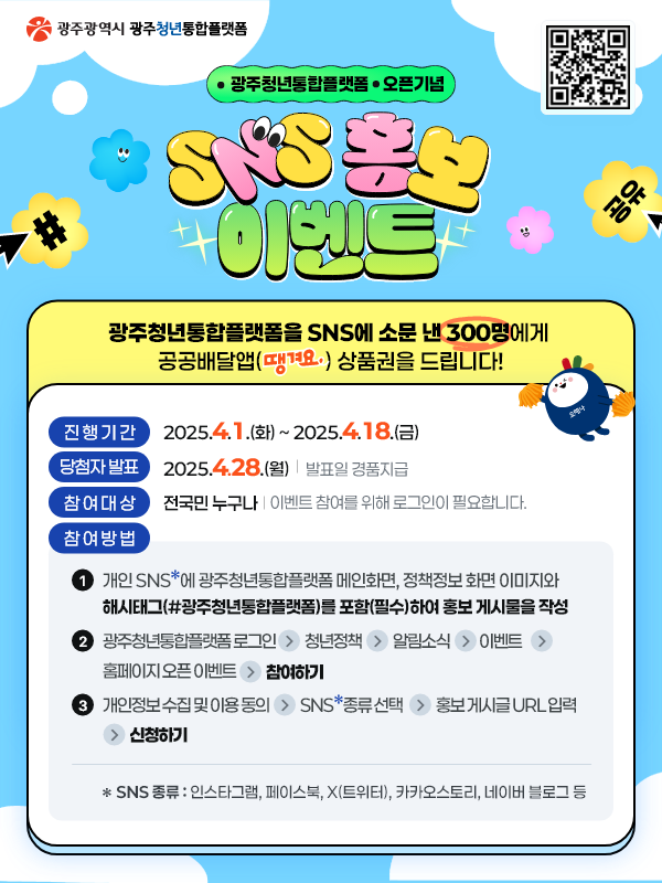 ▣ 이벤트명 : 광주청년통합플랫폼 오픈 기념 SNS 홍보 이벤트