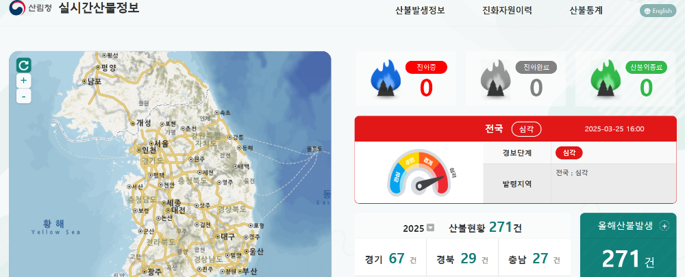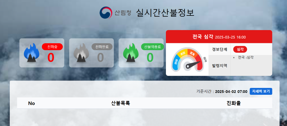 산림청 홈페이지 실시간 산불정보