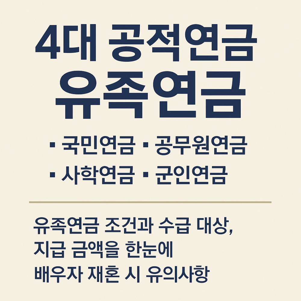 "국민연금, 공무원연금, 사학연금, 군인연금 유족연금 조건과 수급 대상, 지급 금액을 한눈에 정리했습니다.